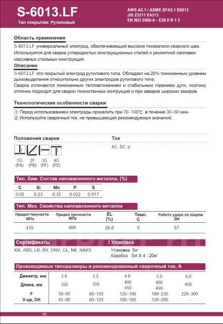 При сварке электроды S-6013.LF выделяют на 20% меньше дыма, чем другие электроды с аналогичным покрытием, и обеспечивают отличное качество сварки во всех пространственных положениях. Электроды S-6013.LF особенно рекомендуются для сварки конструкций тонкостенных из малоуглеродистых и низколегированных сталей, так как обладают высокой стабильностью горения дуги, легким отделением шлаковой корки, красивым (гладким) внешним видом шва и относительно неглубоким (поверхностным) проплавлением.